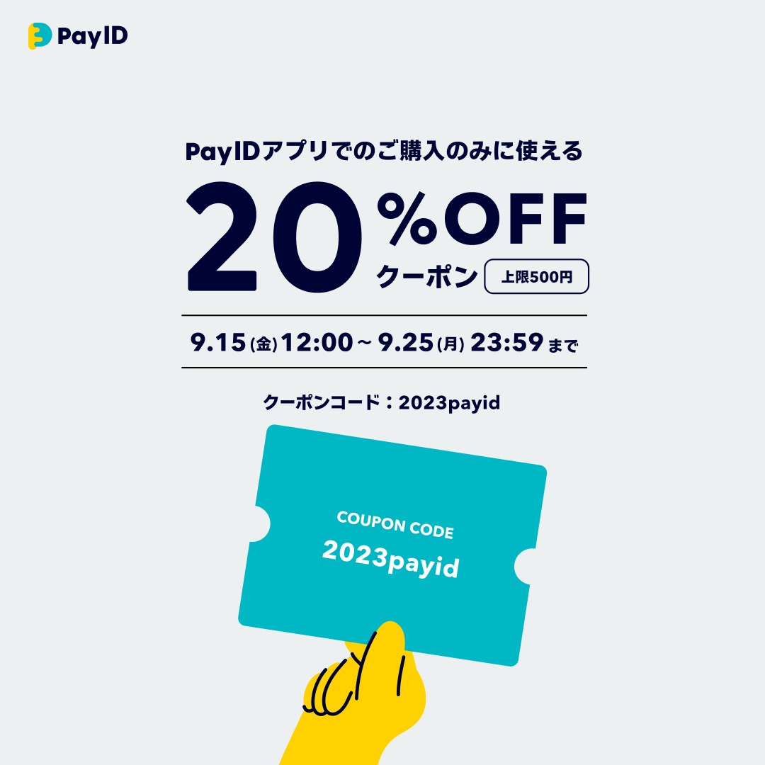 Pay IDアプリからのご購入で、9/15〜9/25まで使える20%OFFクーポン(割引最大500円)をプレゼント!
