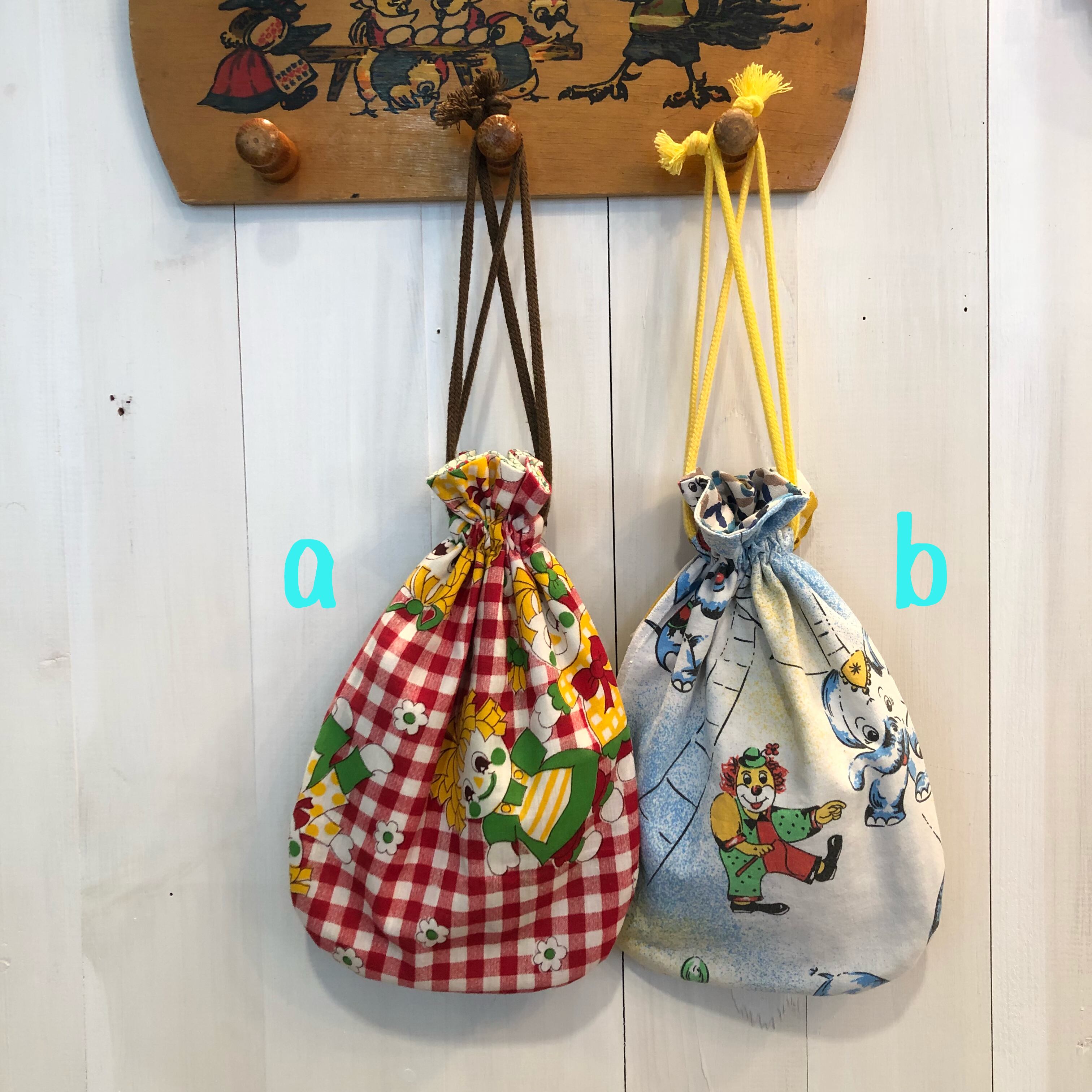 まるいかたちに大きな絞り口がかわいいきんちゃくです。