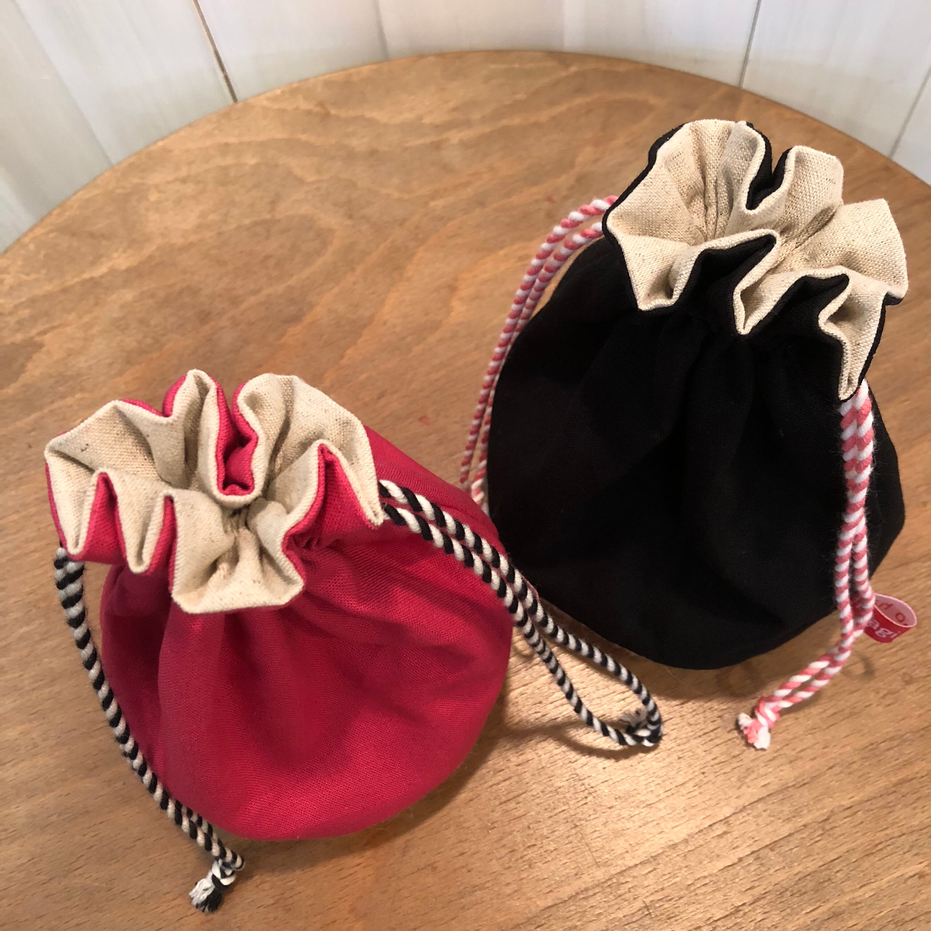 綿麻のナチュラルな風合いの丸底きんちゃくです。