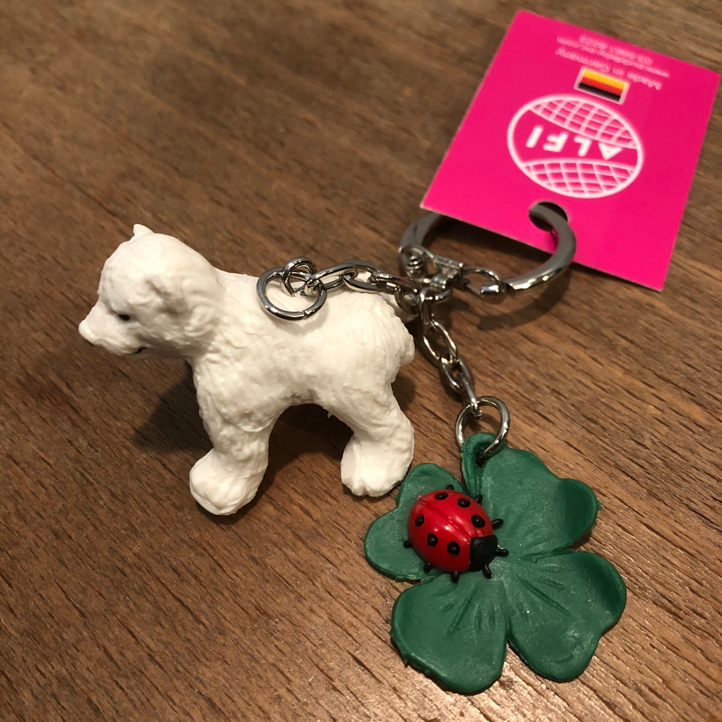 キュートなシロクマと四つ葉のクローバーのうれしい組み合わせ。