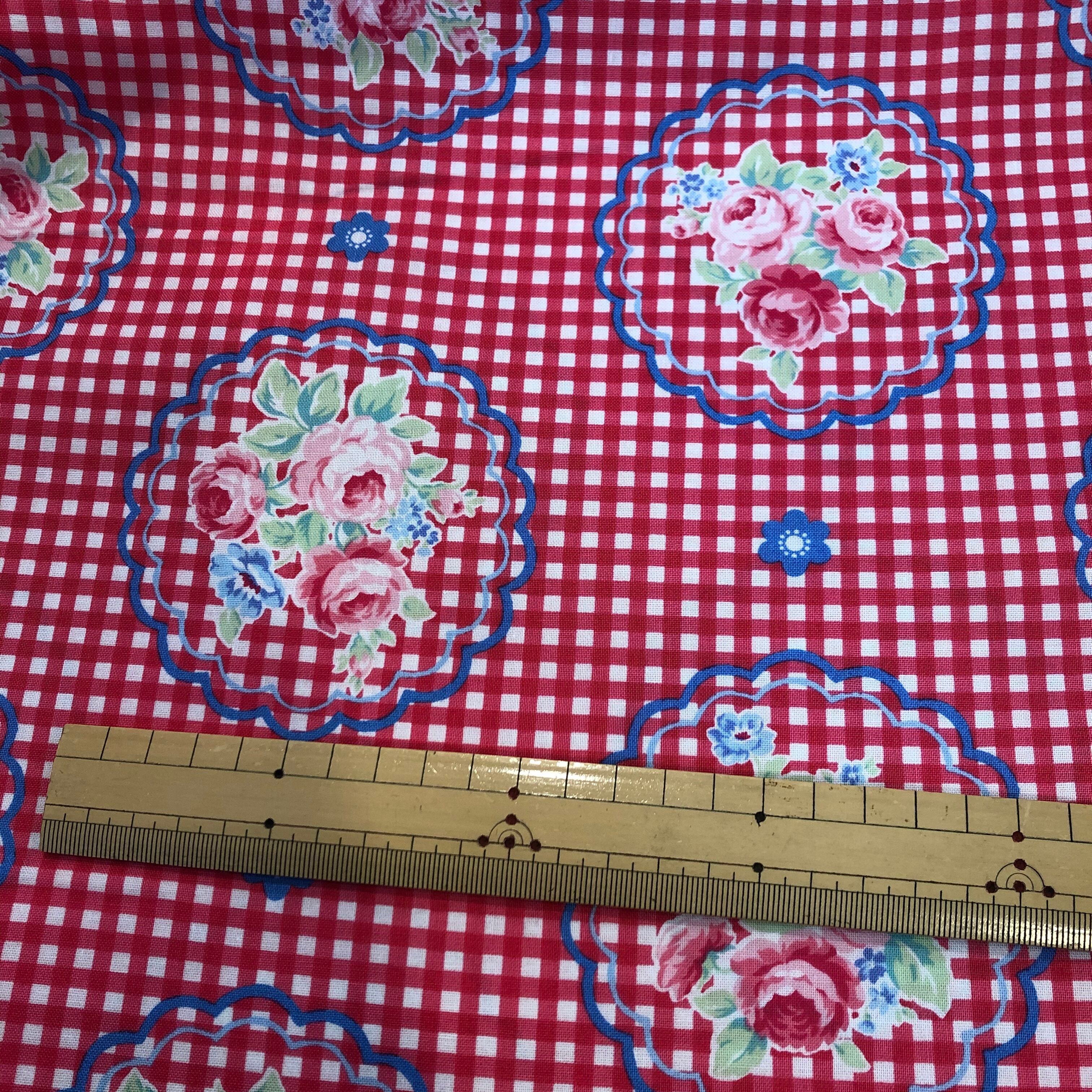 ギンガムチェックとお花柄の組み合わせがガーリーなファブリックです。