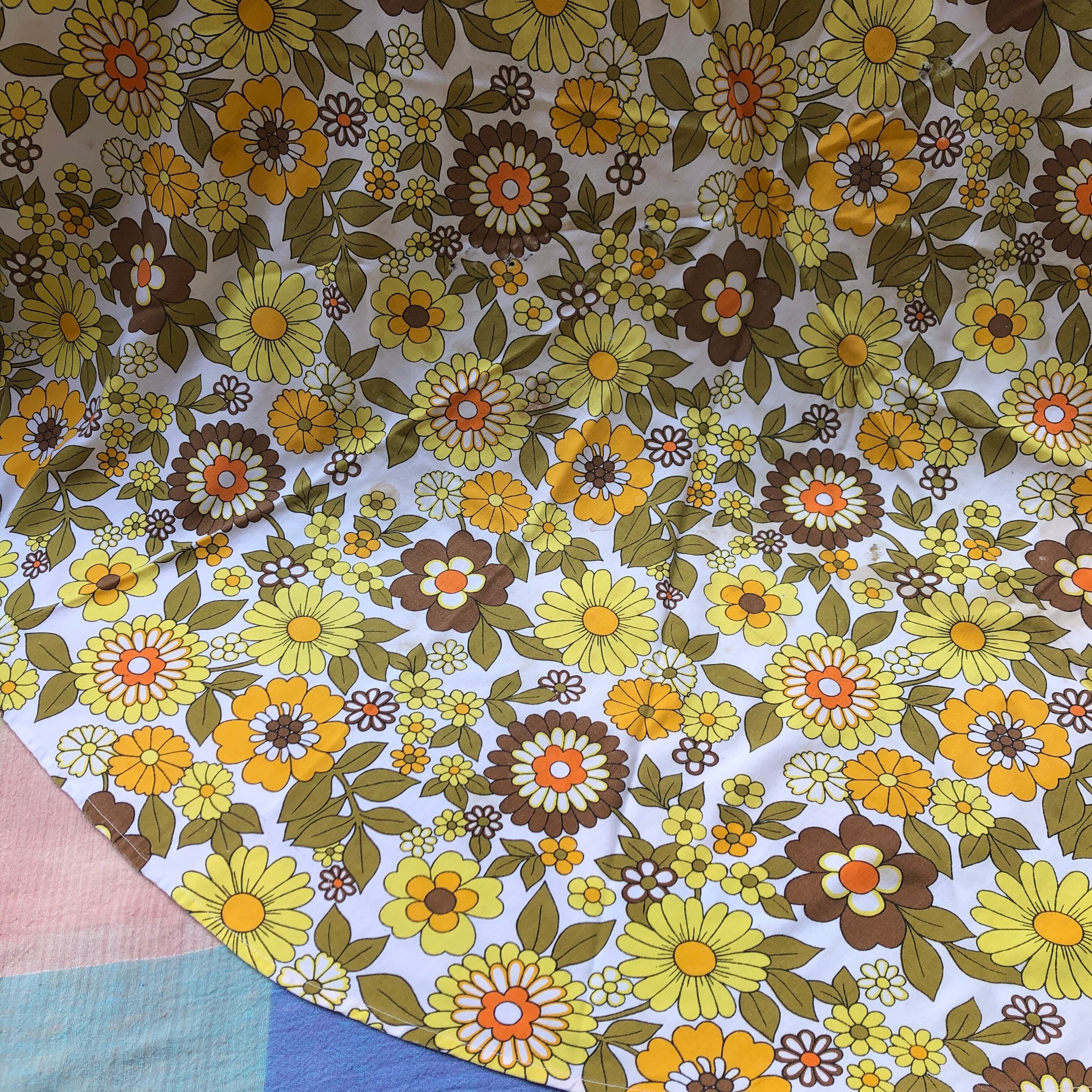 ヴィンテージの黄色いお花柄円型クロスです。