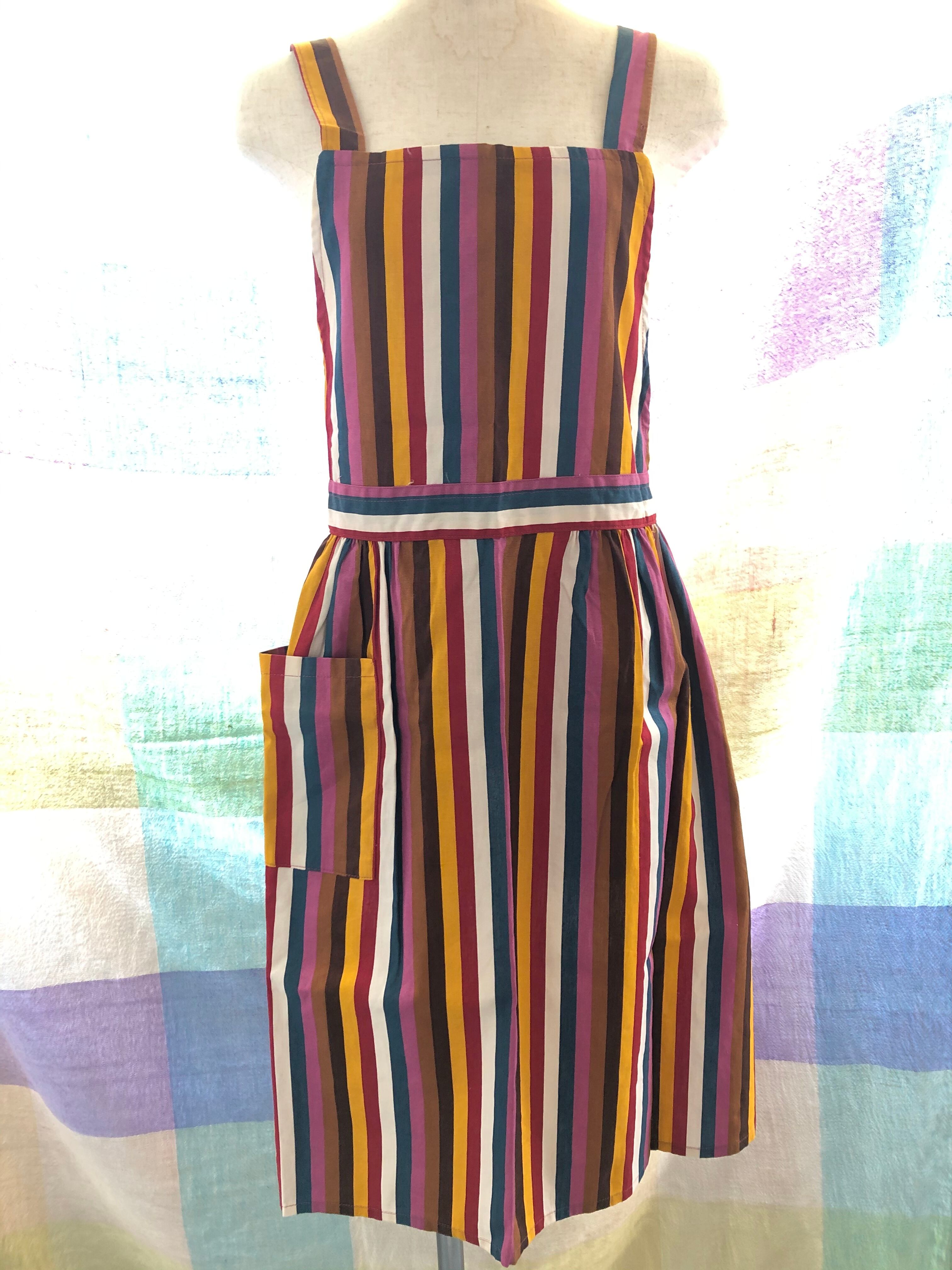 【14周年】レトロエプロン カラフルストライプ