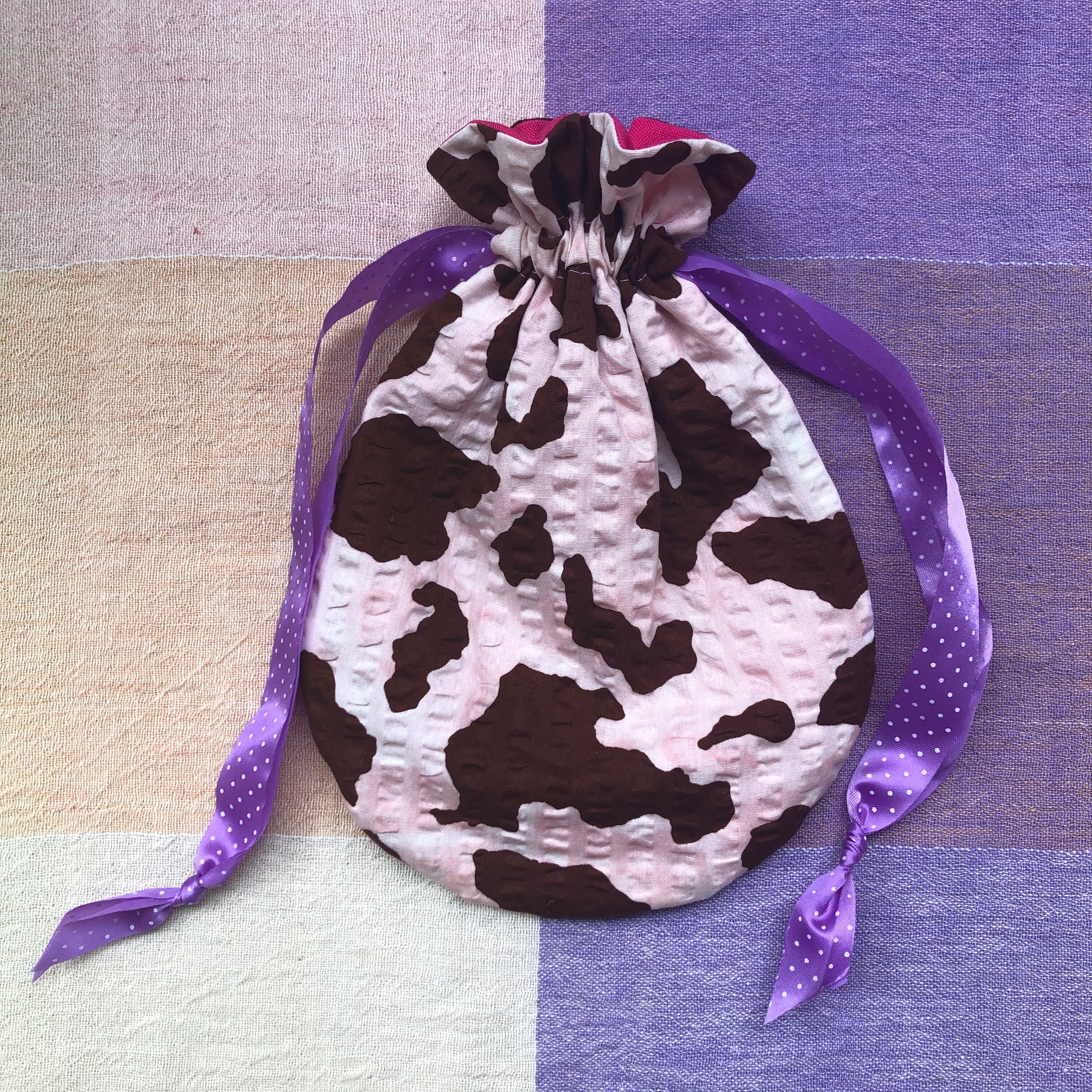 牛さん柄のきんちゃくを作りました。