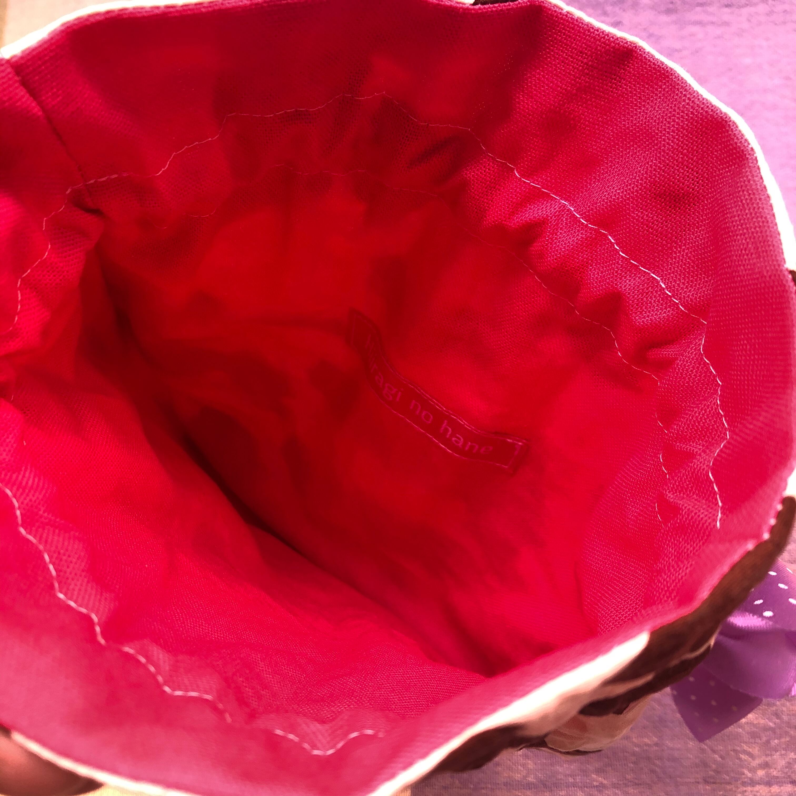 内側は明るいピンクの綿麻生地です。