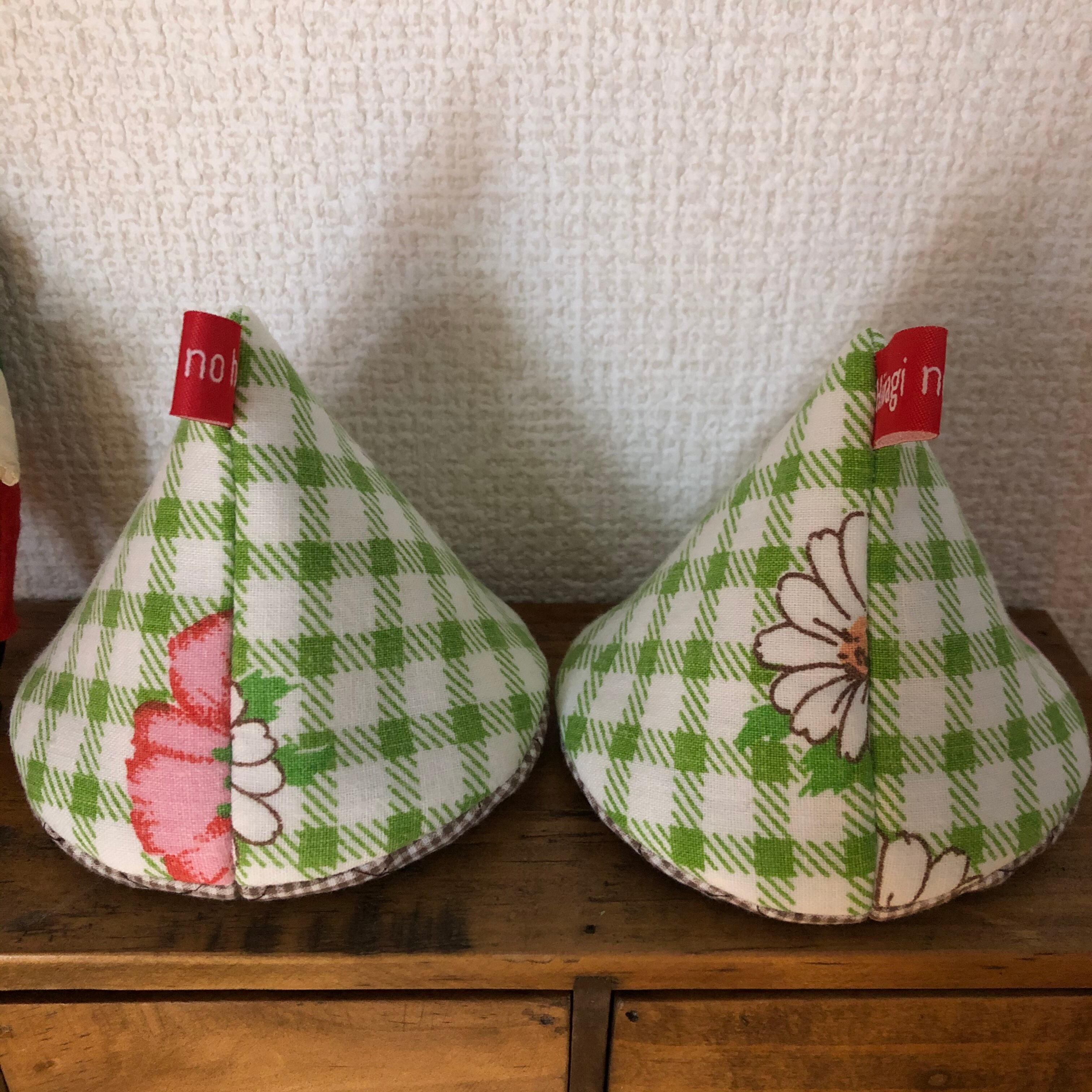 とんがり帽子の鍋つかみ【ミドリチェック×お花】