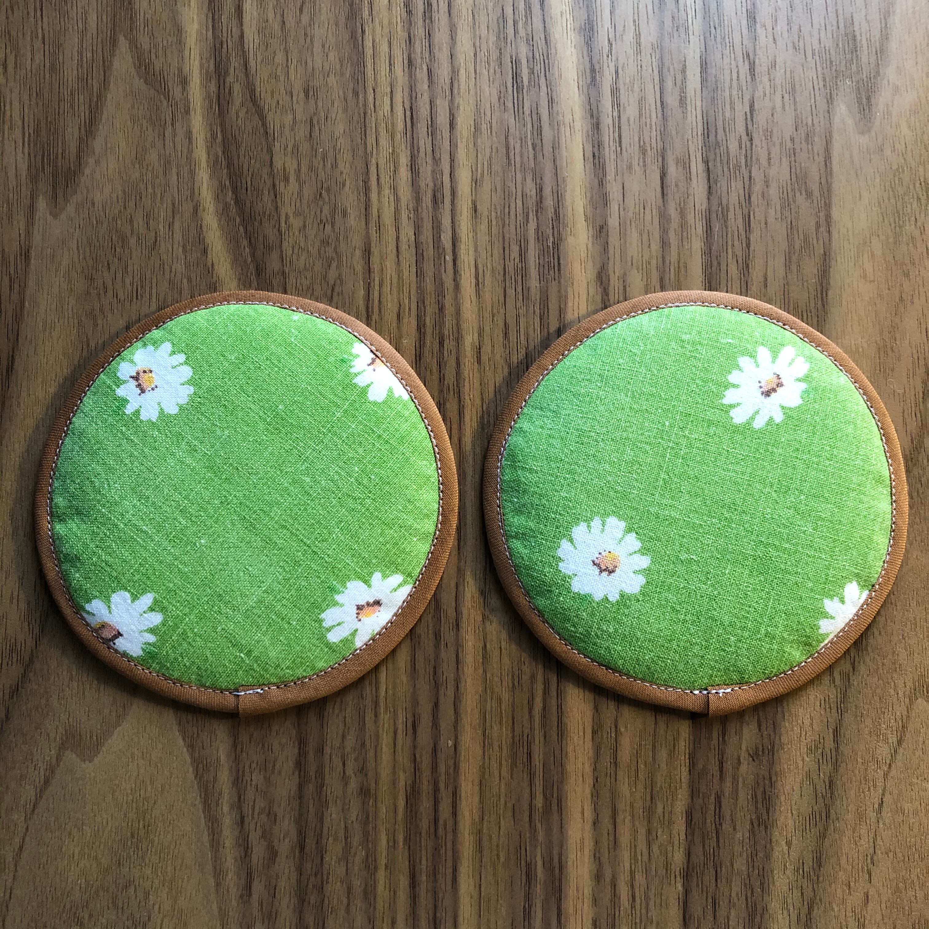 こちらはチェック柄ではありませんが、実はミドリチェック×お花の鍋つかみと同じ生地です。
