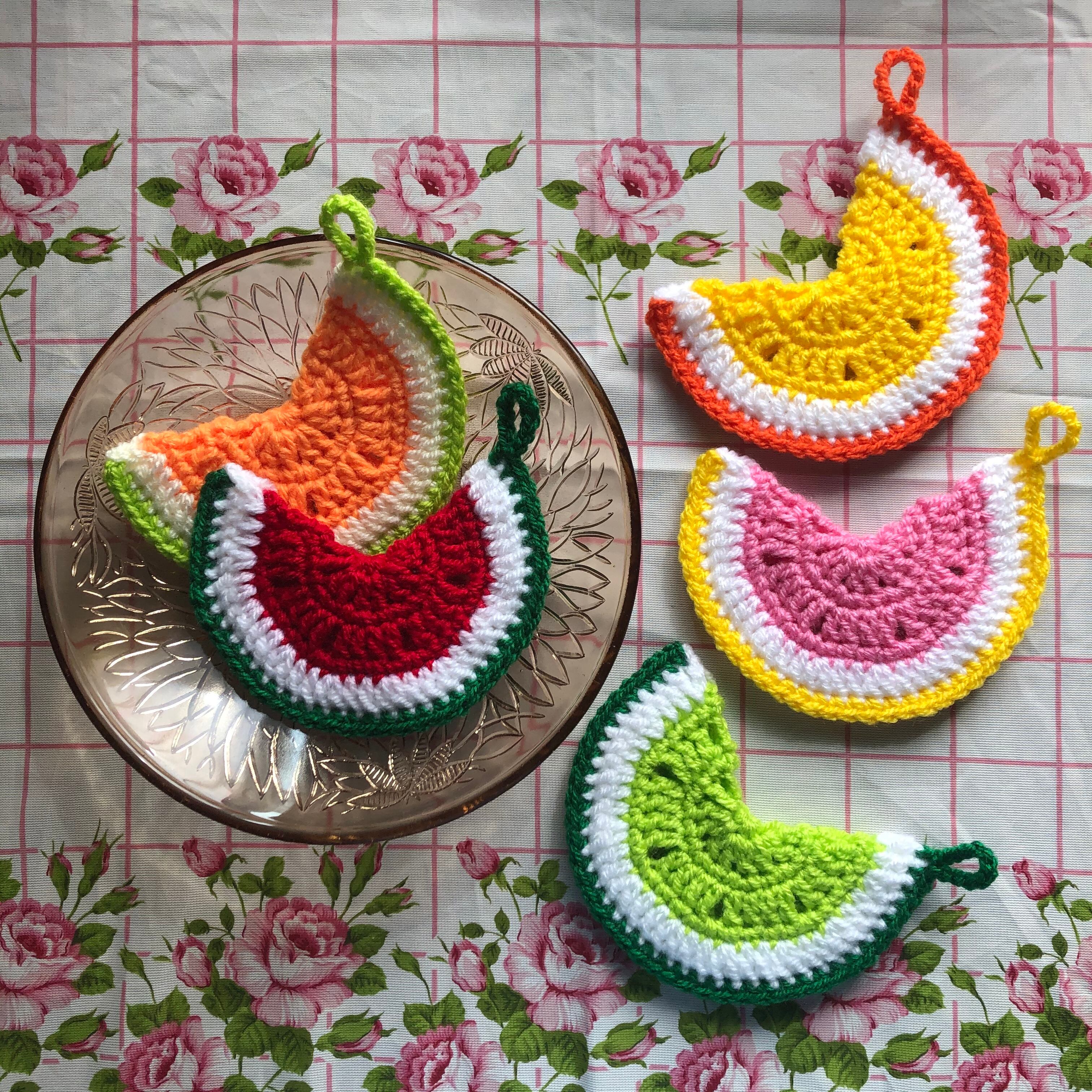 手編みのアクリルたわしです。