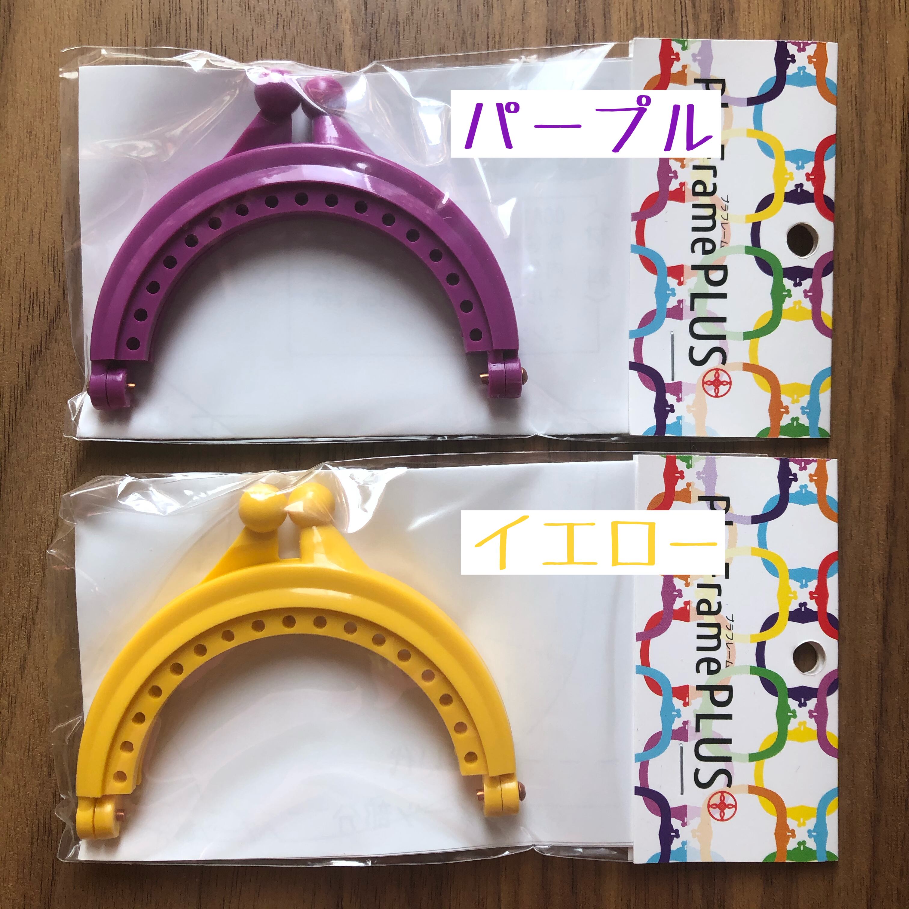 カラフルなプラスチックのがまぐち口金です。