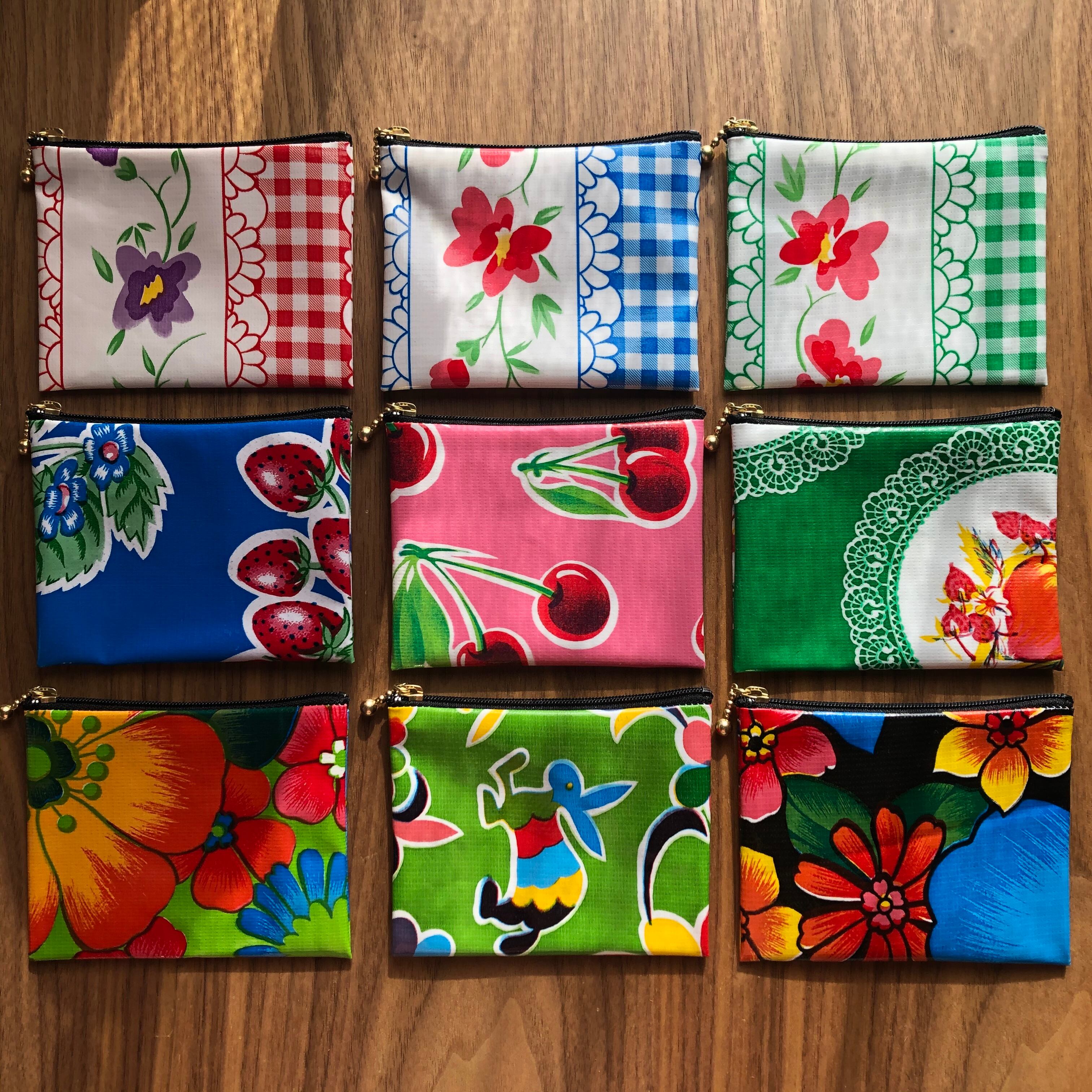 メキシコ製のオイルクロスで作ったミニポーチです。