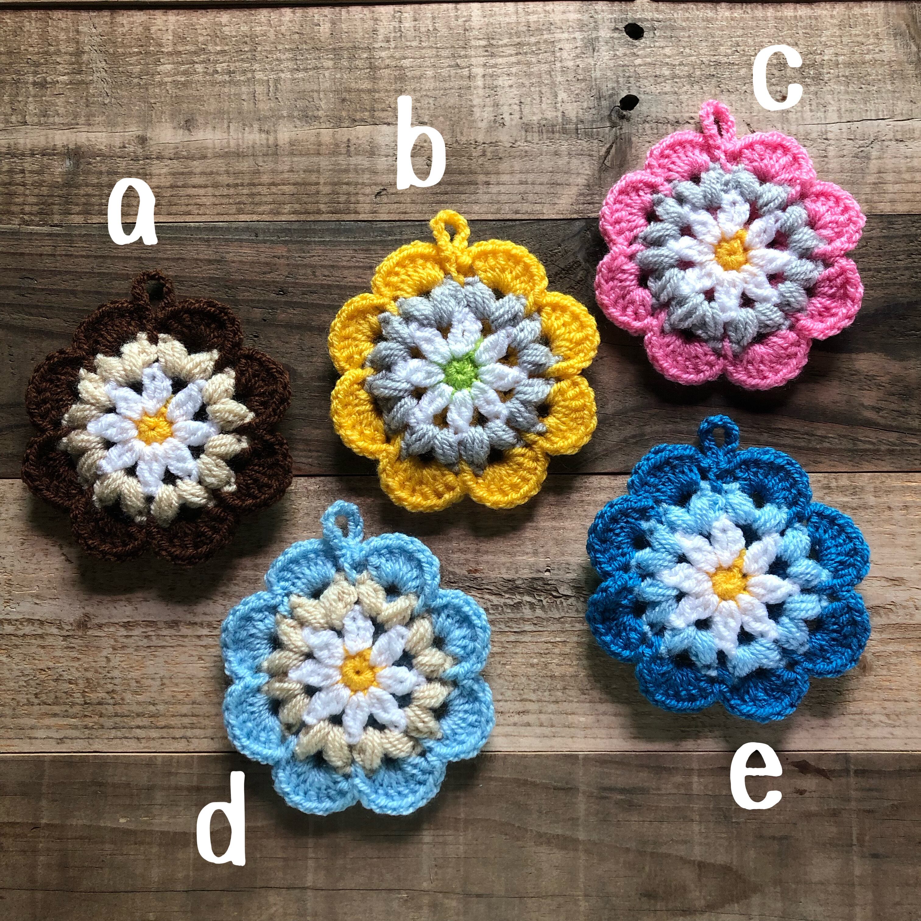 手編みのアクリルたわしです。