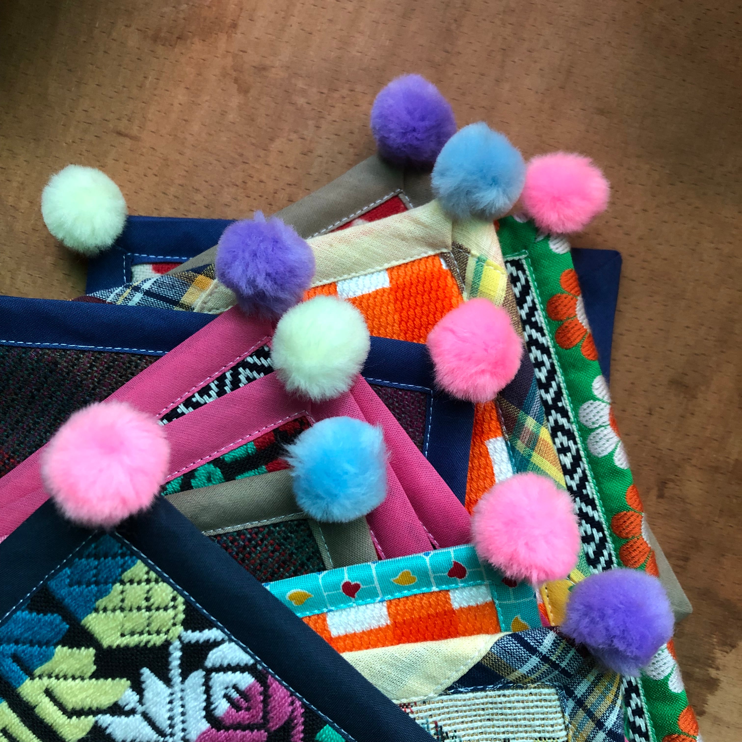 古着のワンピースやジャケットの生地を使って作りました。