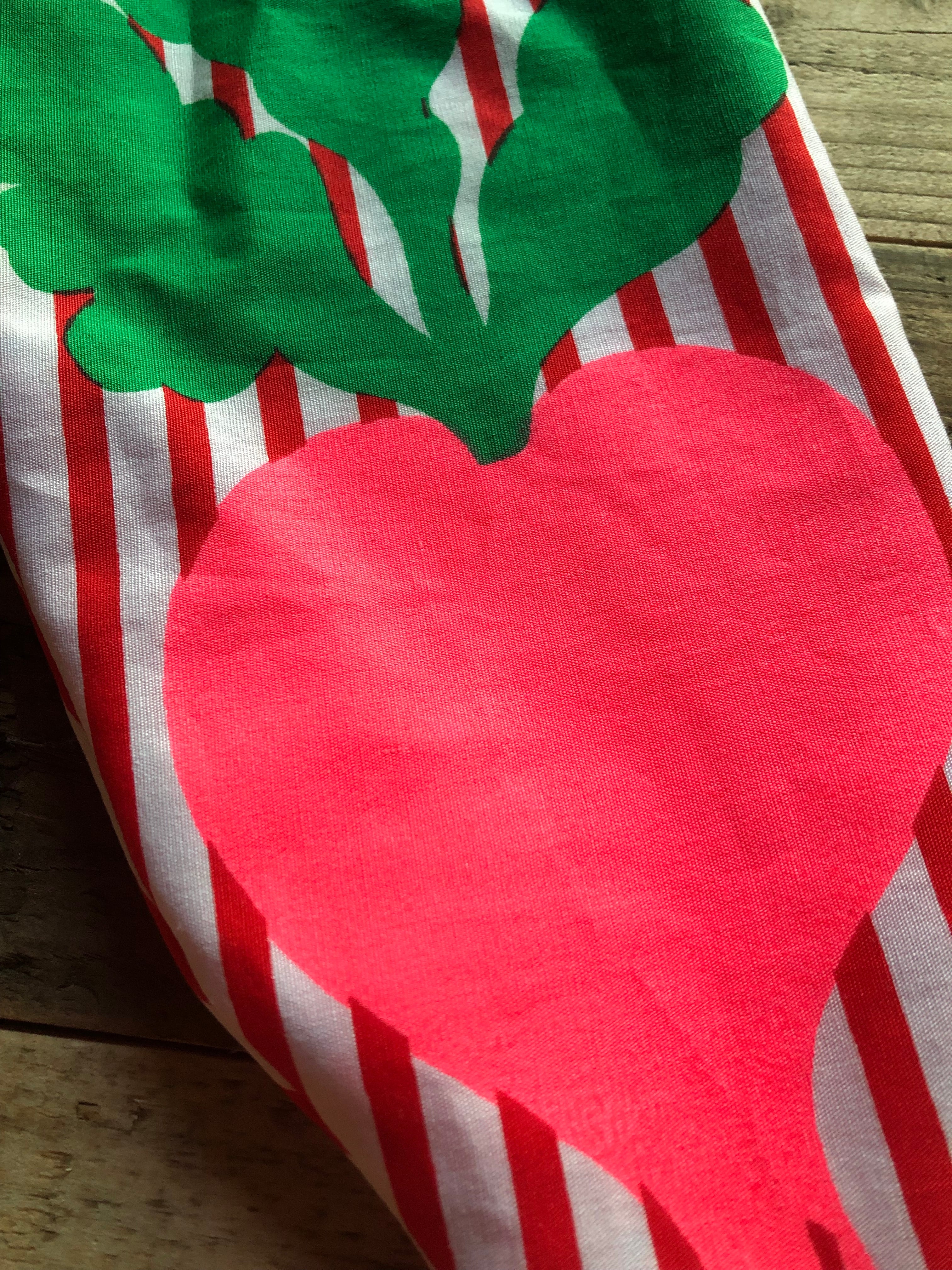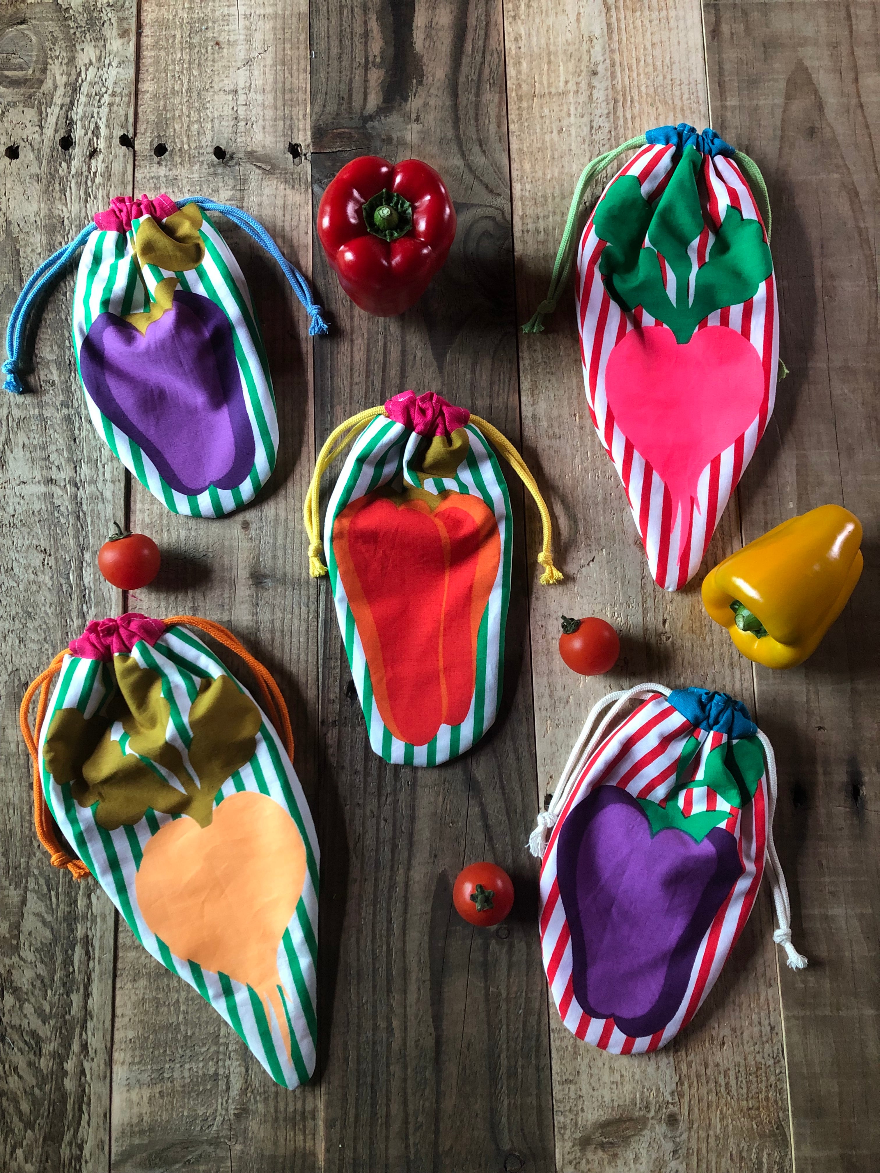 ユニークな野菜のプリントをそのまま活かした巾着です。